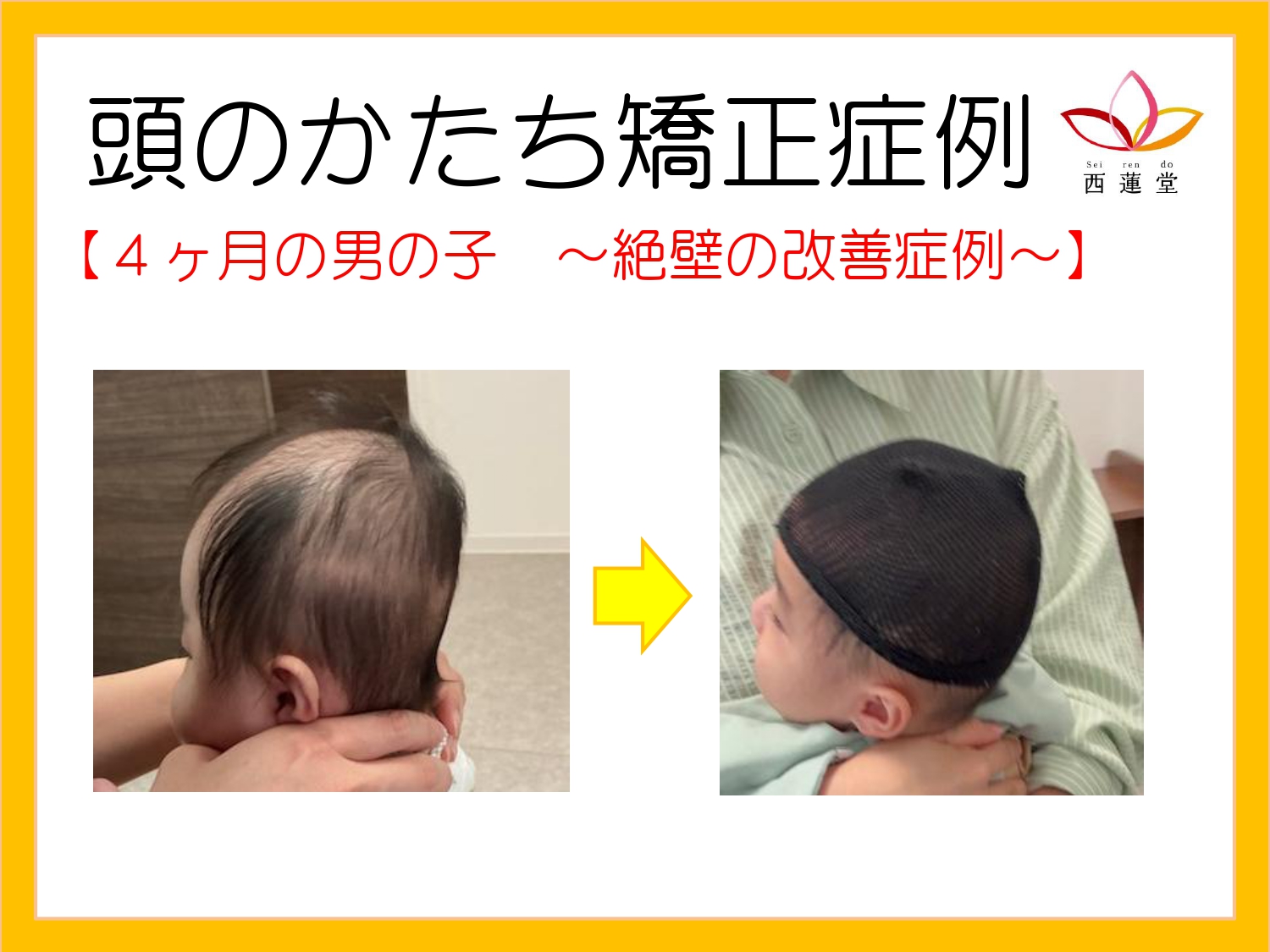 ・4ヶ月通わせていただき、いまはどっちの後頭部が斜頭だったか分からなくなるくらい、左右同じように丸くなり、後頭部の絶壁もなくなりました。